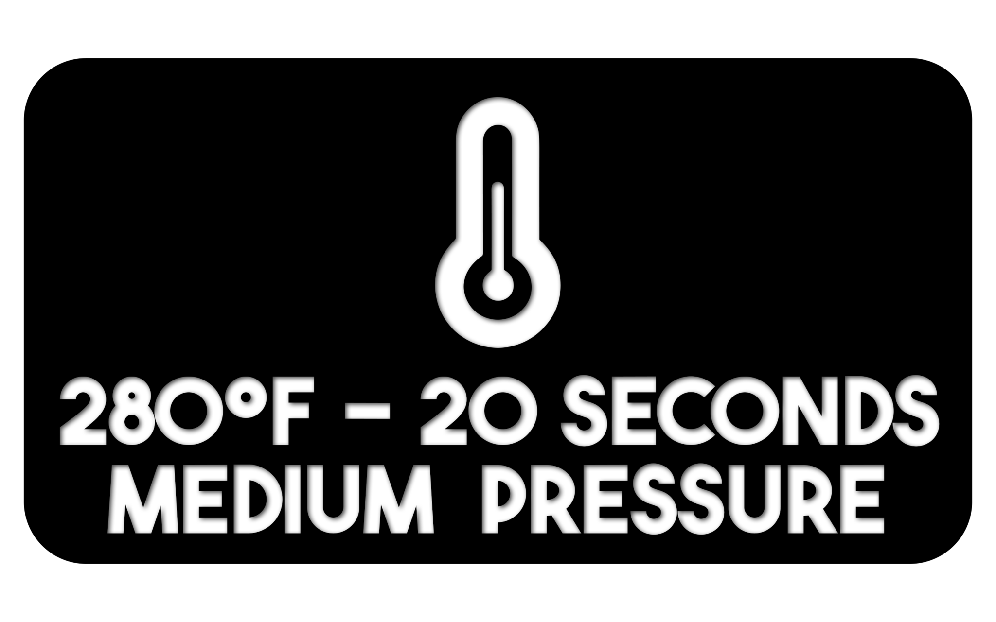 280°F • 20 seconds • Medium pressure • Warm-to-cold peel • Re-press 5–8 seconds with parchment